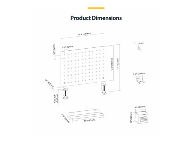 1612B-DESK-PEGBOARD - Startech Clamp-On Pegboard with Accessories, 16.5 x 12.5in (42 x 32cm), Steel Pegboard, Desktop Storage Organizer, Desk Mount Peg Board, Black