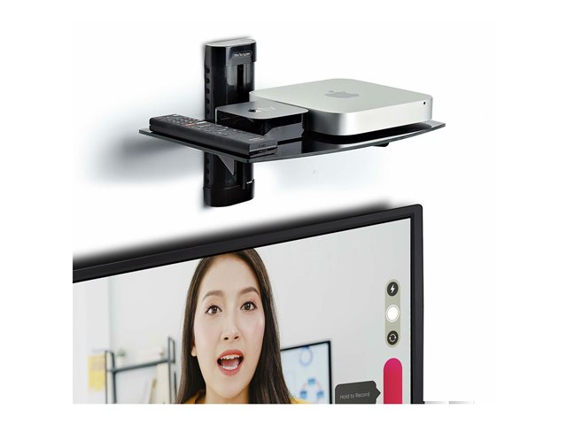 1B-WALL-MOUNT-SHELF - Startech Floating Wall-Mounted AV Shelf, Adjustable Height Shelf For Under TV, Organize A/V Equipment On Black Tempered Glass Shelf