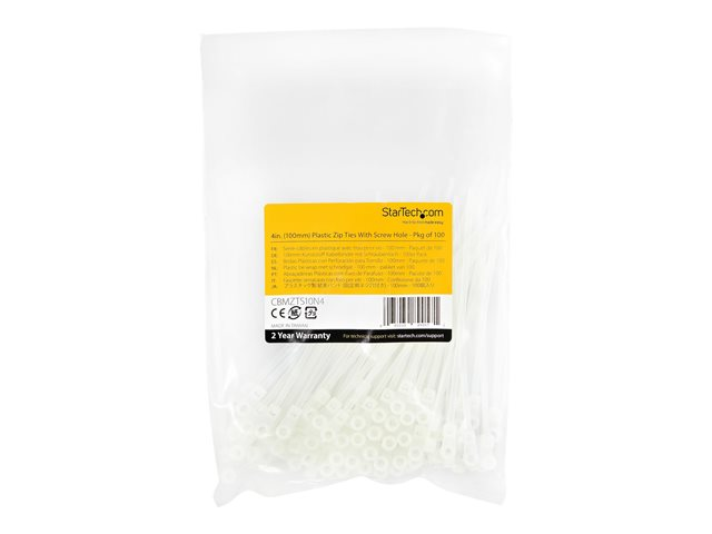 CBMZTS10N4 - Startech 10cm(4") Cable Ties with Mounting Hole, 2mm(1/16") wide, 24mm(7/8") Bundle Dia. 8kg(18lb) Tensile Strength, Nylon 66 Self Locking Ties with Screw Hole, UL Listed, 100 Pack
