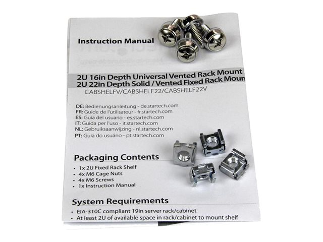 CABSHELF22 - Startech 2U Fixed Server Rack Mount Shelf, 22in Deep Steel Universal Cantilever Tray for 19" AV/Data/Network Equipment Rack with Cage Nuts & Screws, 50lbs Weight Capacity, 22" Deep